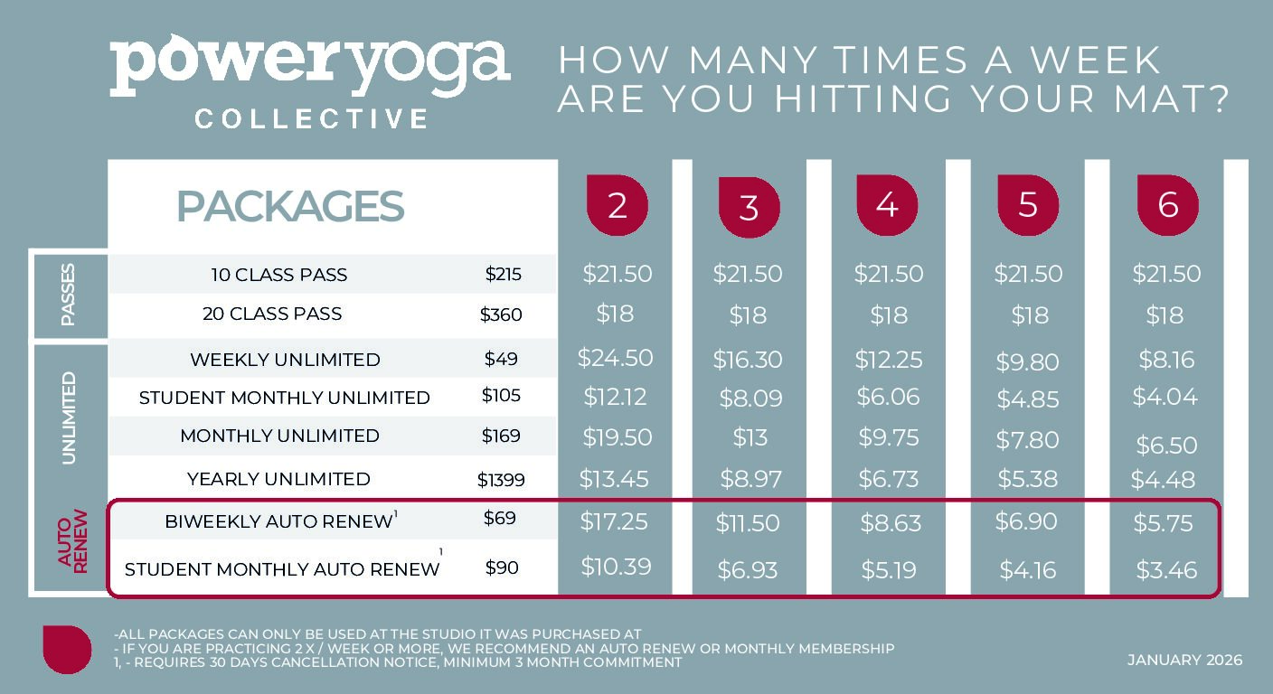 It is important to us that you have the opportunity to get to know us, so we have reserved our best deal for YOU—30 days of yoga for only $59! This pass allows you to jump in with two feet—meet our teachers, get to know our community and experience firsthand the benefits of Power Yoga. If you need additional information to support your journey, email us or give us a call!